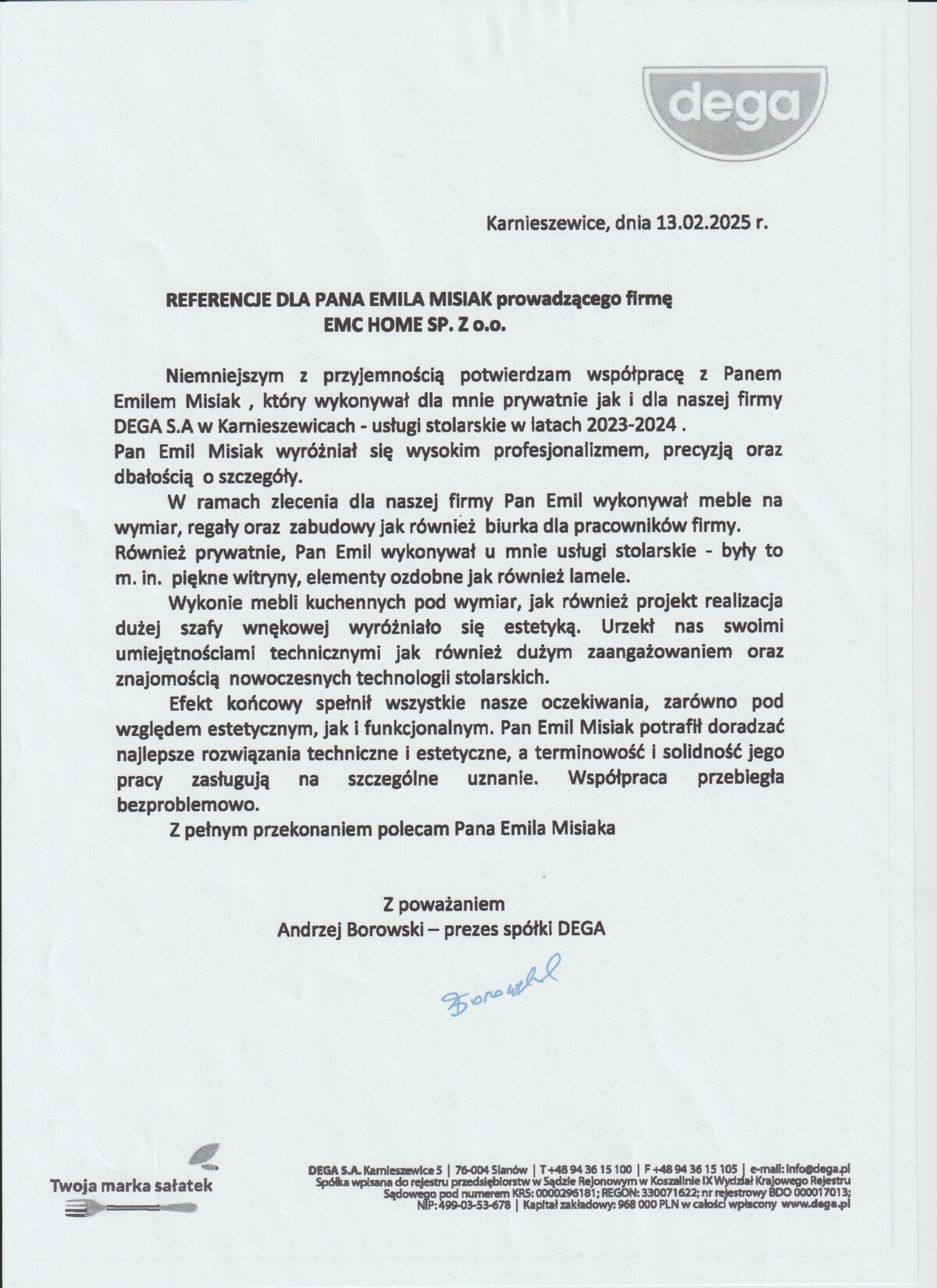 Prezes DEGA S.A.